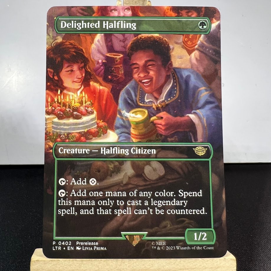This is a high quality Delighted Halfling 0402 MTG proxy card. We use the latest printing and cutting technology to create a realistic proxy card that you can use at home , in FNM, or even Small Local tournament. My cards will make your deck more competitive at a reasonable price. Great for any formats especially commander.