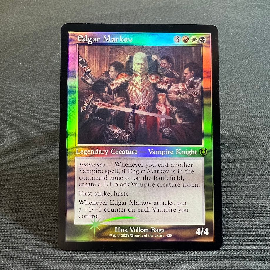 This is a high quality Edgar Markov 428 Foil MTG Proxy Cards . We use the latest printing and cutting technology to create a realistic proxy card that you can use at home , in FNM, or even Small Local tournament. My cards will make your deck more competitive at a reasonable price. Great for any formats especially commander.