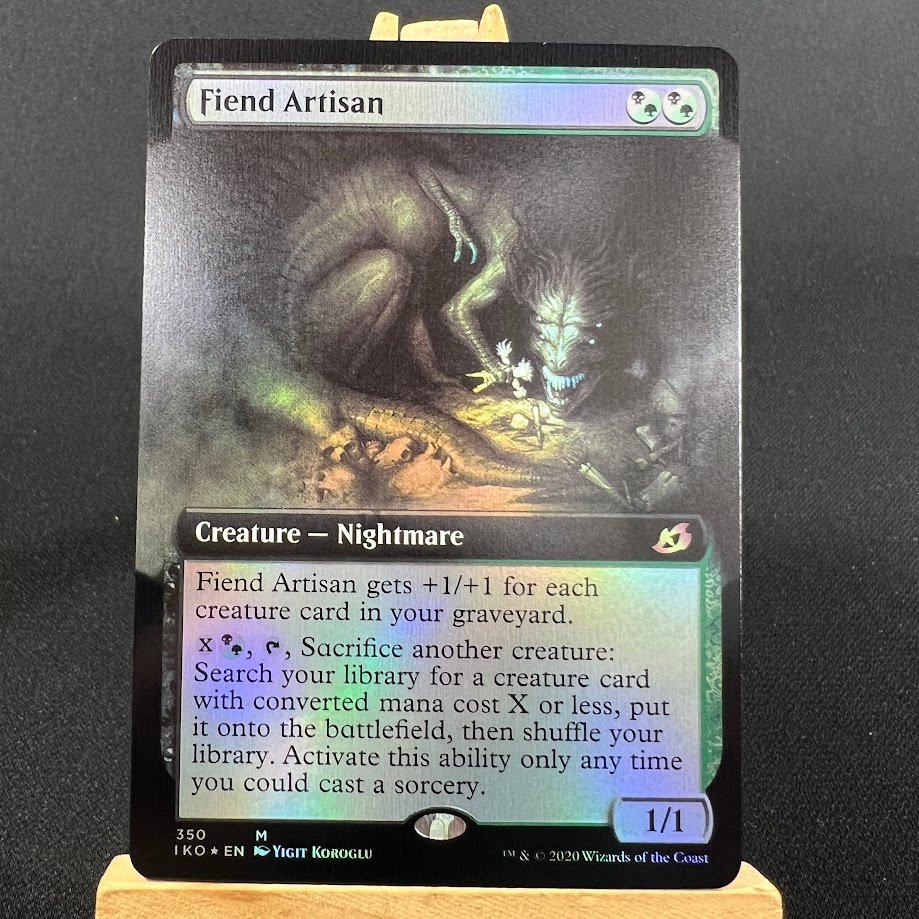 This is a high quality Fiend Artisan Foil MTG Proxy Cards . We use the latest printing and cutting technology to create a realistic proxy card that you can use at home , in FNM, or even Small Local tournament. My cards will make your deck more competitive at a reasonable price. Great for any formats especially commander.