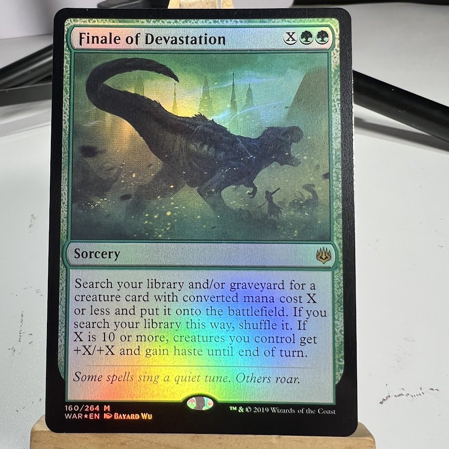 This is a high quality Finale of Devastation foil MTG Proxy Cards . We use the latest printing and cutting technology to create a realistic proxy card that you can use at home , in FNM, or even Small Local tournament. My cards will make your deck more competitive at a reasonable price. Great for any formats especially commander.