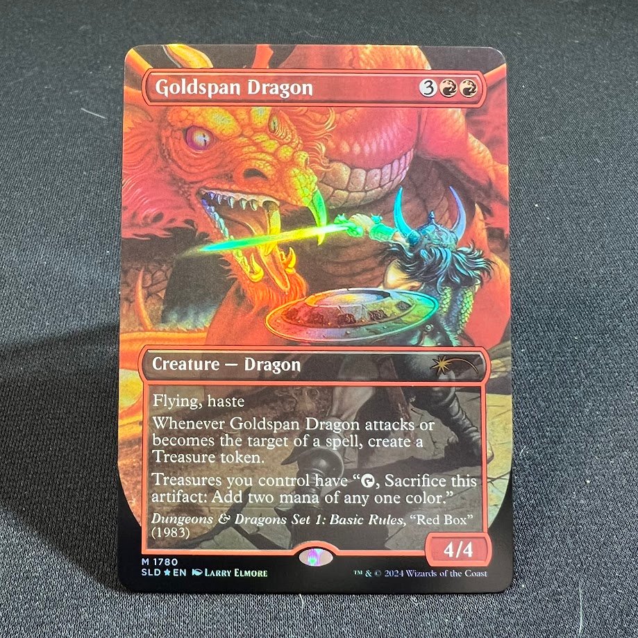 This is a high quality Goldspan Dragon SLD 1780 foil MTG Proxy Cards . We use the latest printing and cutting technology to create a realistic proxy card that you can use at home , in FNM, or even Small Local tournament. My cards will make your deck more competitive at a reasonable price. Great for any formats especially commander.