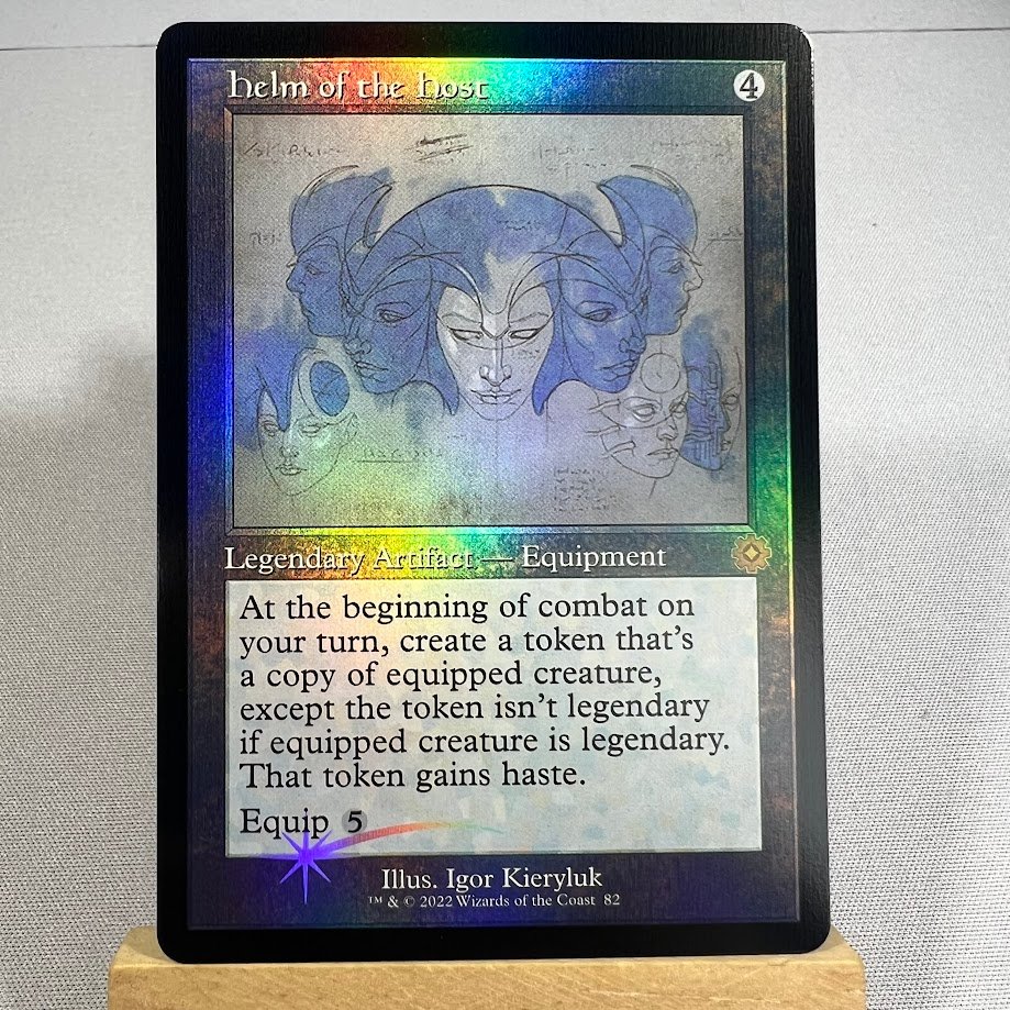 This is a high quality Helm of the Host BRR 82 foil MTG Proxy Cards . We use the latest printing and cutting technology to create a realistic proxy card that you can use at home , in FNM, or even Small Local tournament. My cards will make your deck more competitive at a reasonable price. Great for any formats especially commander.