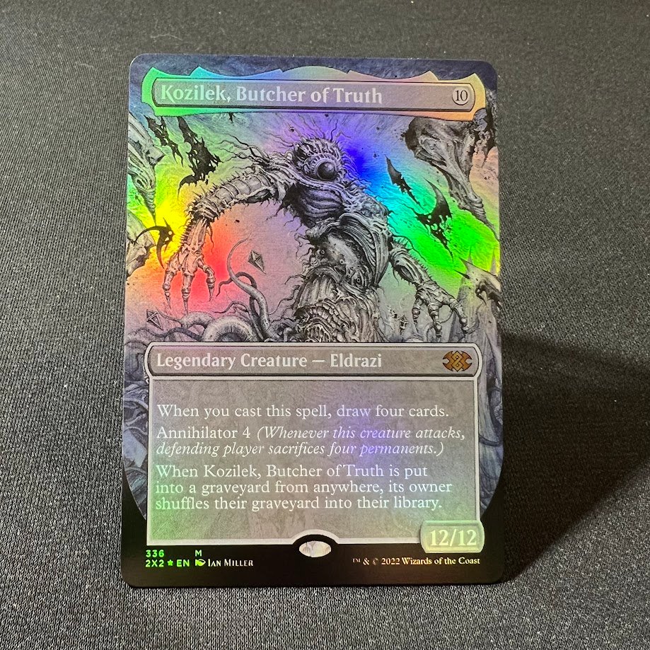 This is a high quality Kozilek, Butcher of Truth 2X2 borderless foil MTG Proxy Cards . We use the latest printing and cutting technology to create a realistic proxy card that you can use at home , in FNM, or even Small Local tournament. My cards will make your deck more competitive at a reasonable price. Great for any formats especially commander.