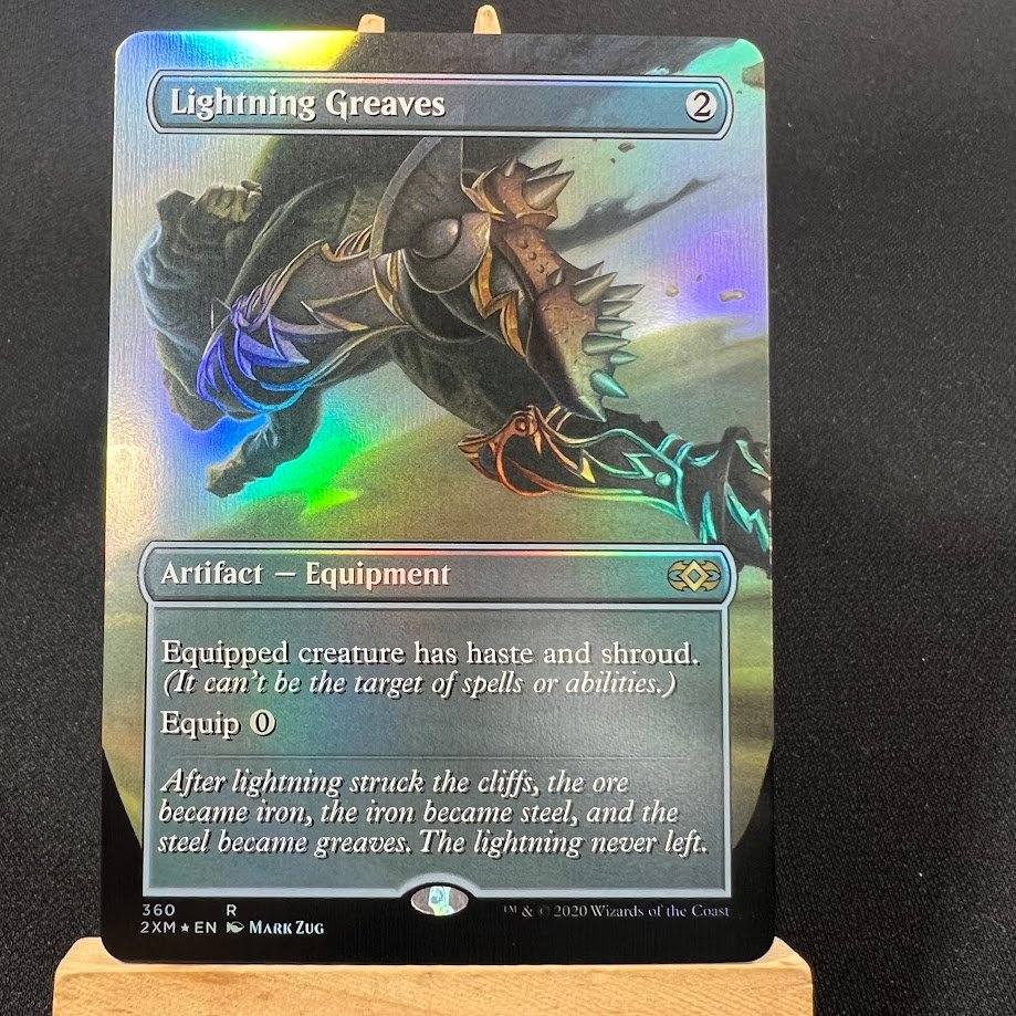 This is a high quality Lightning Greaves 2XM Borderless foil MTG Proxy Cards . We use the latest printing and cutting technology to create a realistic proxy card that you can use at home , in FNM, or even Small Local tournament. My cards will make your deck more competitive at a reasonable price. Great for any formats especially commander.