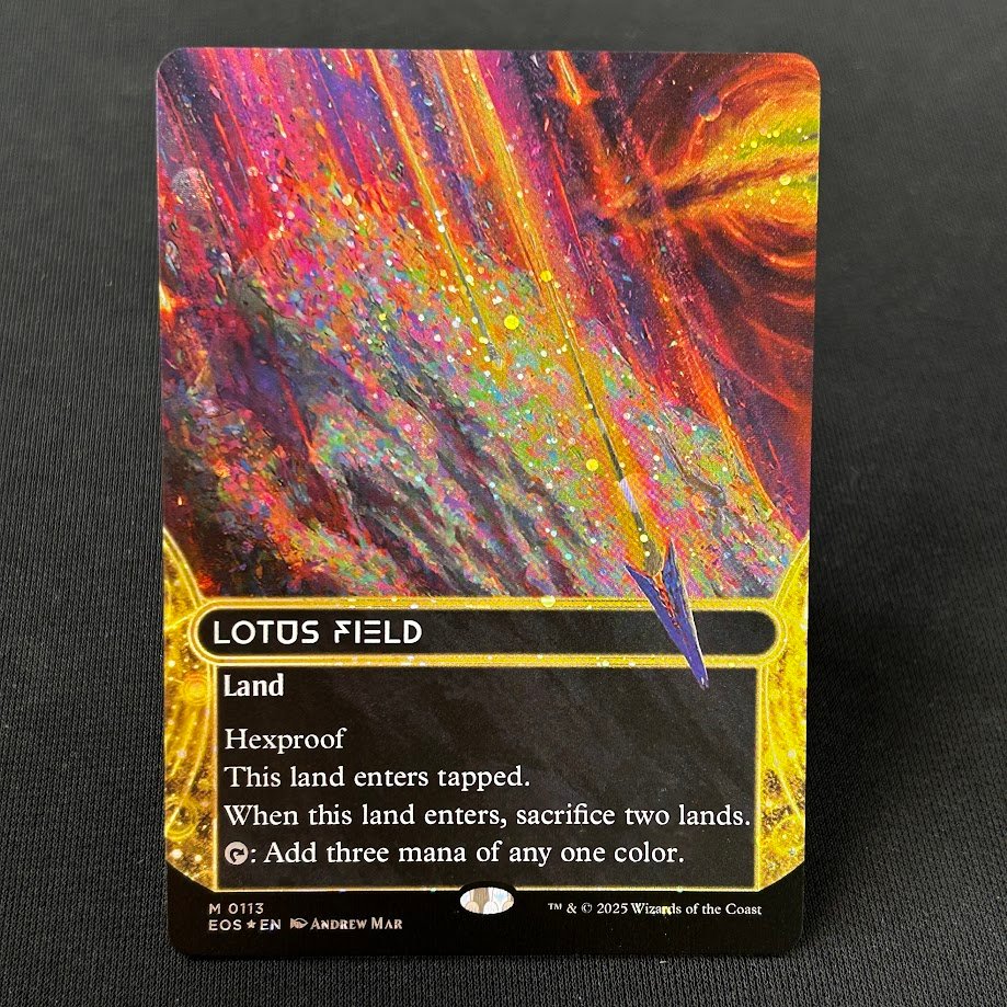 This is a high quality Lotus Field EOS #113 New Galaxy Foil MTG Proxy Cards . We use the latest printing and cutting technology to create a realistic proxy card that you can use at home , in FNM, or even Small Local tournament. My cards will make your deck more competitive at a reasonable price. Great for any formats especially commander.