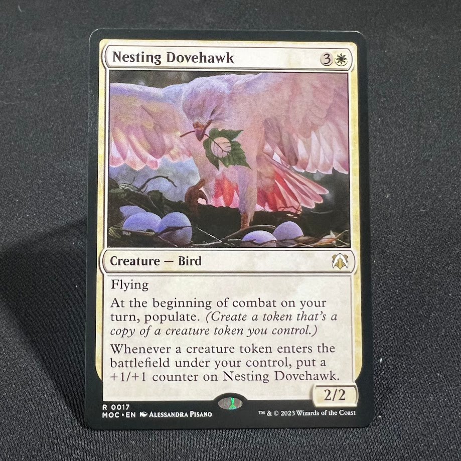 This is a high quality Nesting Dovehawk #17 MTG proxy card. We use the latest printing and cutting technology to create a realistic proxy card that you can use at home , in FNM, or even Small Local tournament. My cards will make your deck more competitive at a reasonable price. Great for any formats especially commander.