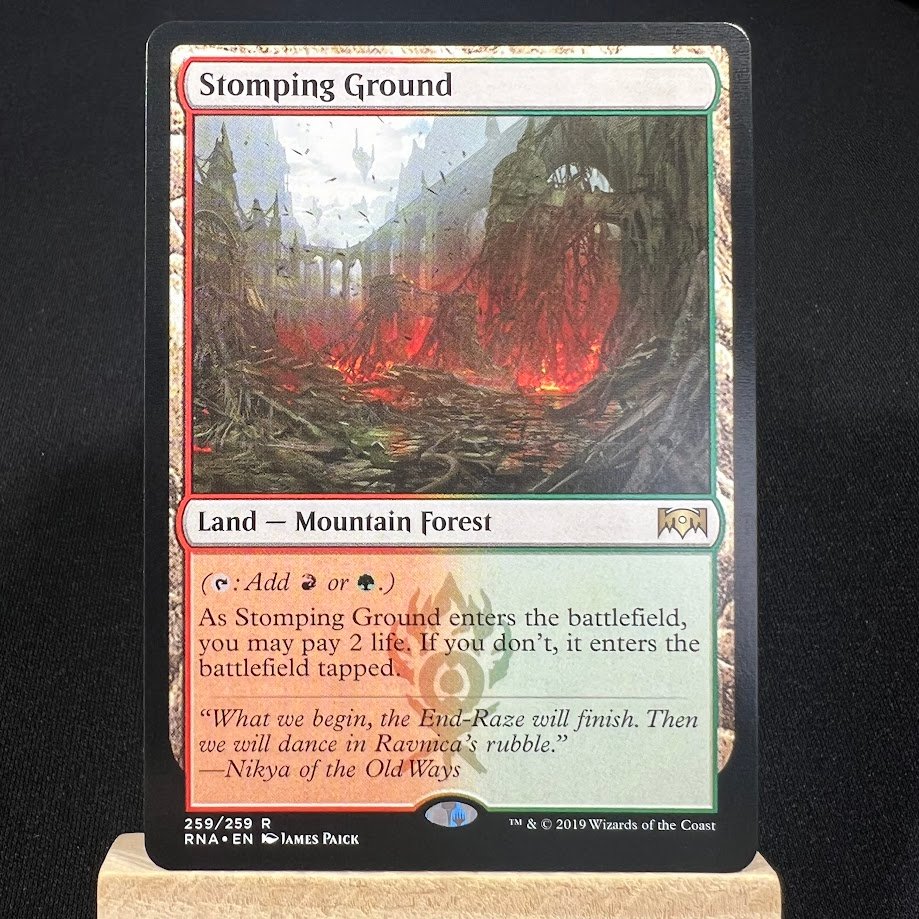 This is a high quality Stomping Ground RNA MTG proxy card. We use the latest printing and cutting technology to create a realistic proxy card that you can use at home , in FNM, or even Small Local tournament. My cards will make your deck more competitive at a reasonable price. Great for any formats especially commander.