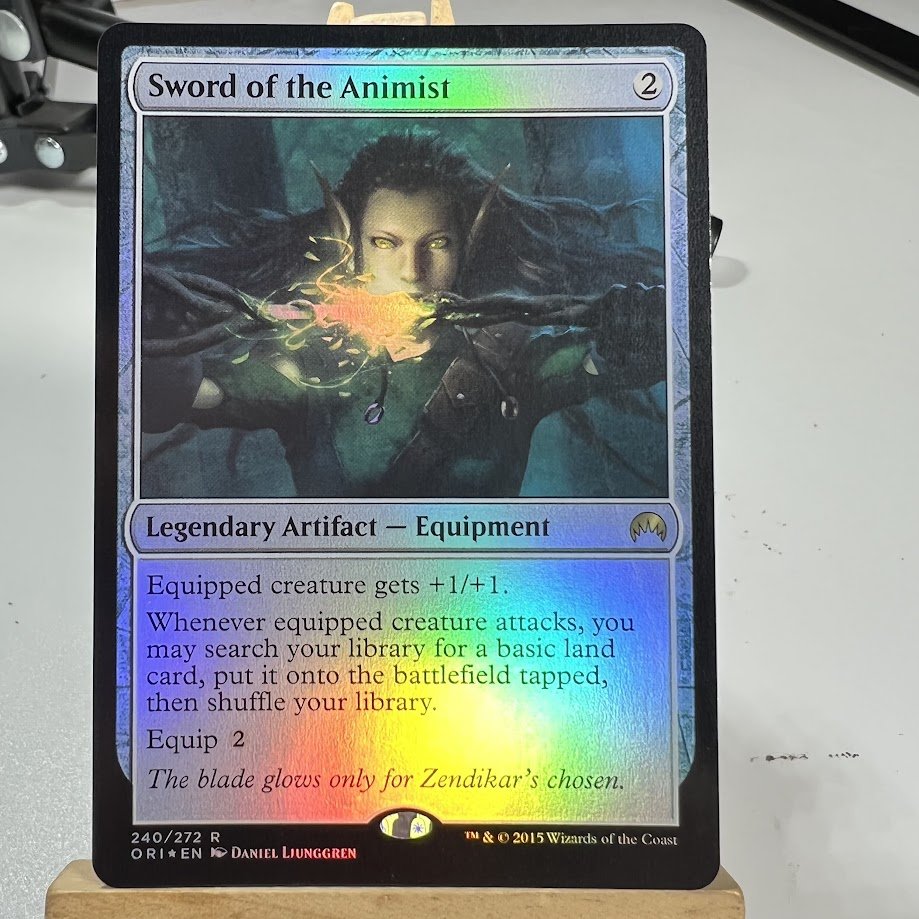 This is a high quality Sword of the Animist ORI foil MTG Proxy Cards . We use the latest printing and cutting technology to create a realistic proxy card that you can use at home , in FNM, or even Small Local tournament. My cards will make your deck more competitive at a reasonable price. Great for any formats especially commander.
